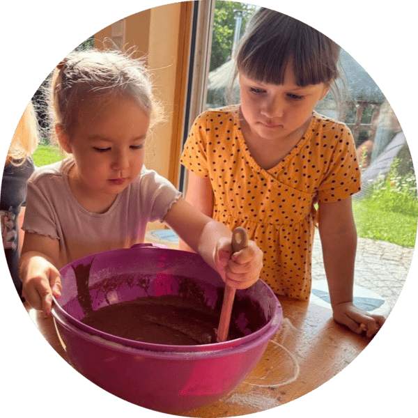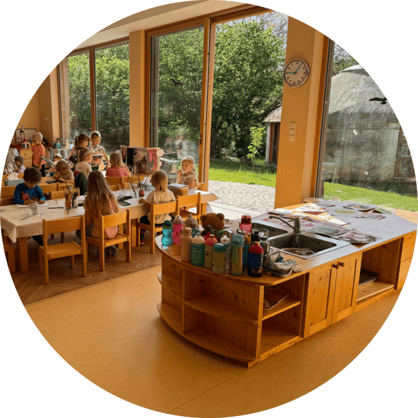 Rytmus dne u nás plyne v poklidu a s respektem k tomu, co malí i velcí průzkumníci potřebují. Každý den má svůj pevný řád, který dětem dává pocit bezpečí, ale zároveň nabízí dostatek prostoru pro vlastní objevování. Volná hra se střídá s řízenou činností a odpočinkem tak, aby byl každý den v rovnováze. Snažíme se být s dětmi co nejvíce na čerstvém vzduchu – dopoledne i odpoledne – ale zároveň máme své zázemí, když nám počasí nepřeje.